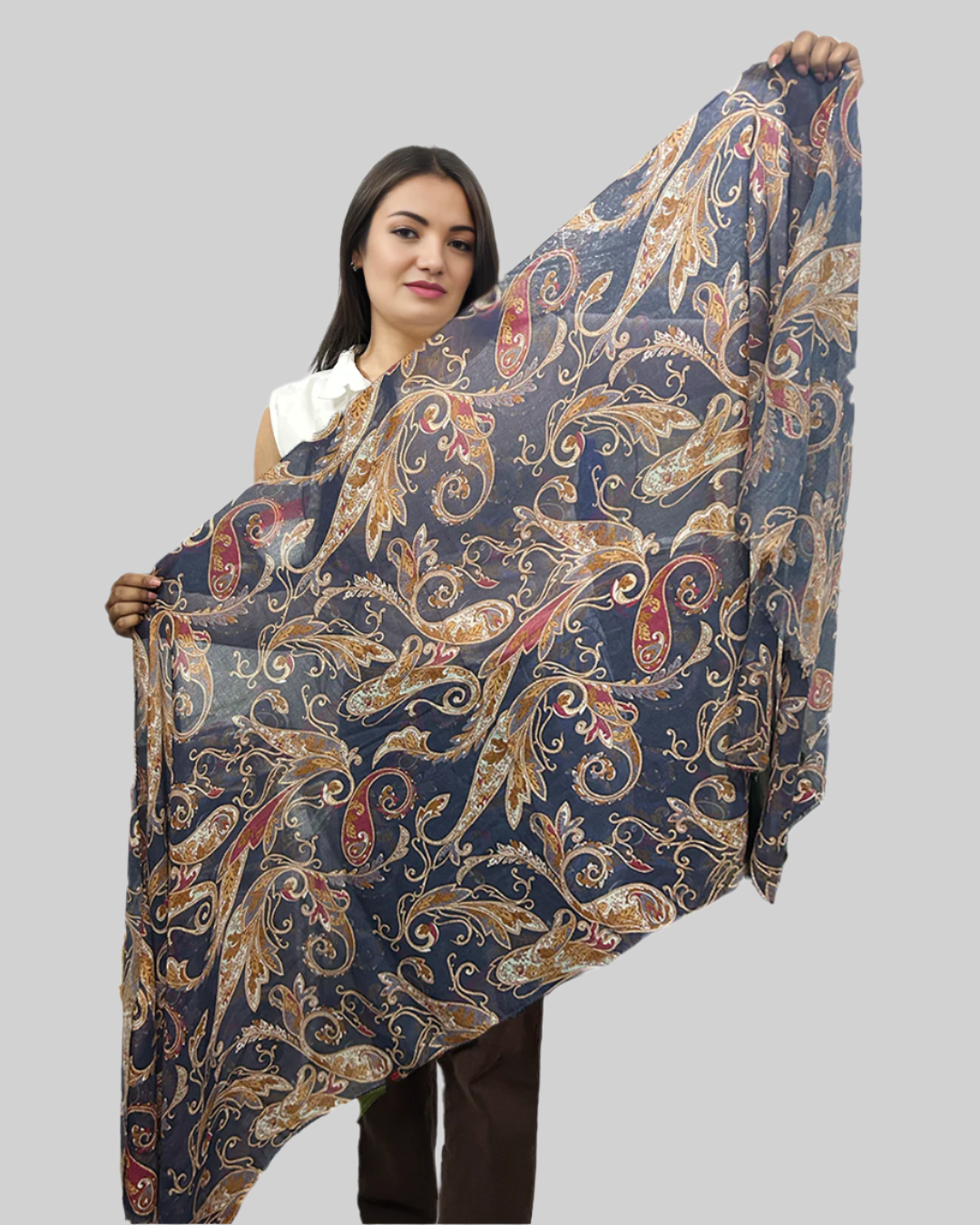 with this exquisite cotton scarf. Featuring a regal paisley and scroll motif, it’s a timeless piece woven from 100% cotton, soft to the touch and light against the skin. A gentle nod to heritage and beauty, it’s perfect for adding quiet sophistication to your every look.